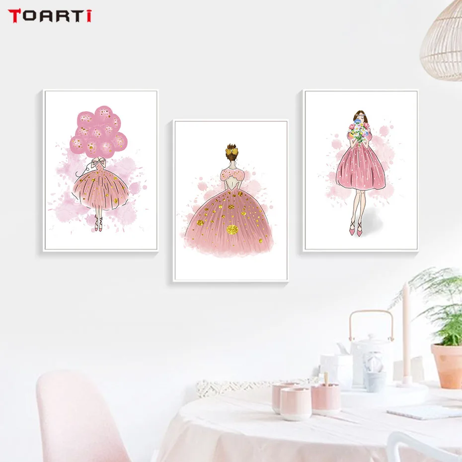 Nordic Poster Pink Kanvas Cetak Dan Poster Dekorasi Rumah Mode Gadis